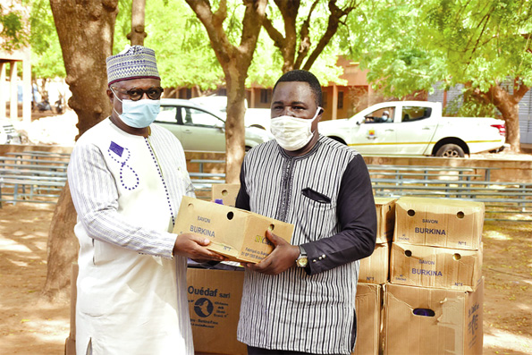 Dans le cadre de la reprise des cours dans les lycées et collèges pour les élèves des classes d’examen, le maire de la commune de Ouagadougou, Armand Pierre Béouindé s’est rendu, le mercredi 3 juin 2020, aux lycées municipaux Bambata et Vénègré. Selon le maire, l’éducation fait partie des compétences transférées aux collectivités territoriales. A l’entendre, la ville de Ouagadougou a donc la responsabilité de plusieurs lycées municipaux. « Les cours ont repris dans les lycées pour les classes d’examen depuis le 1er juin dernier. Et nous sommes venus constater l’effectivité de la reprise des cours. Nous encourageons le corps enseignant, les encadreurs et les élèves qui ont repris les activités dans le contexte de la pandémie », a-t-il déclaré. Armand Pierre Béouindé a dit être satisfait du respect des mesures-barrières contre la pandémie dans les lycées. « Tous les proviseurs sont dans des conditions optimales, les classes ont été réaménagées pour permettre de respecter la distanciation physique. En outre, tous les élèves ont des masques et des dispositifs de lave-mains sont également disposés partout. Nous sommes convaincus que nous arriverons à bout de la COVID-19 », s’est réjoui le maire. Il a remis un lot de matériel composé de savon, de lave-mains et de gel hydroalcoolique pour renforcer les mesures-barrières.