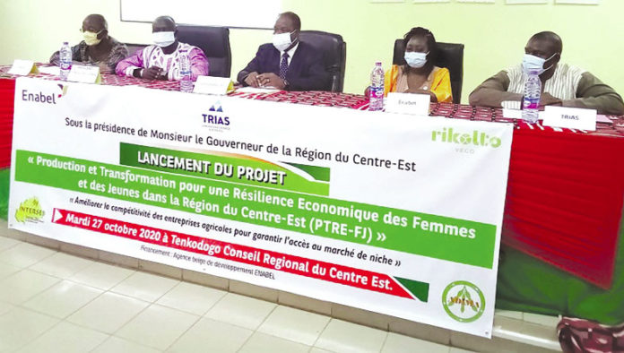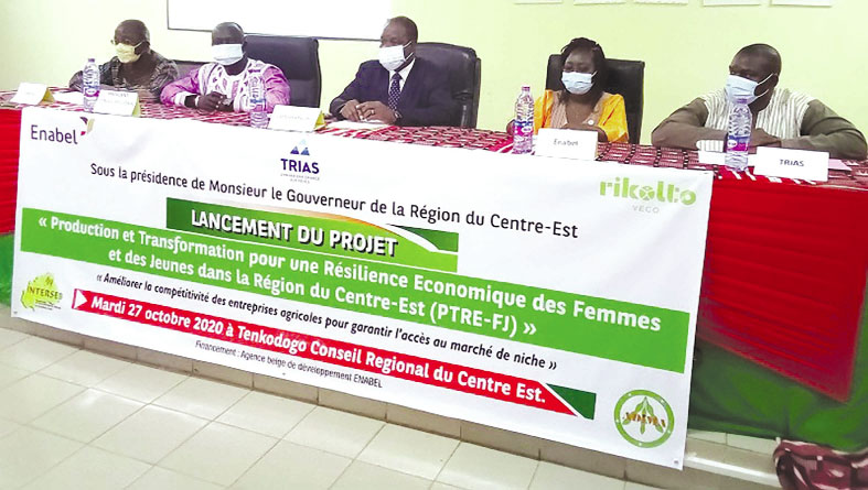 Le projet « Production et transformation pour une résilience économique des femmes et des jeunes de la région du Centre-Est (PTRE-FJ) », financé à hauteur de 655 955 000 FCFA par l’Agence belge pour le développement (Enabel), s’inscrit dans un programme plus large intitulé : « Appui au développement d’un entrepreneuriat inclusif et durable dans la région du Centre-Est » et couvre la période 2019-2023. Il consiste à offrir des produits compétitifs à des marchés de niche d’une part et à promouvoir l’inclusion des jeunes, des femmes et l’équité entre les acteurs économiques dans les Chaînes de valeurs agricoles (CVA), d’autre part. Le projet a été lancé, le mardi 27 octobre 2020 à Tenkodogo, au cours d’un atelier présidé par le gouverneur de la région du Centre-Est, Antoine Ouédraogo. Il s’est agi de partager avec les parties prenantes et les autorités locales, des informations sur les contours du projet notamment le démarrage effectif des
