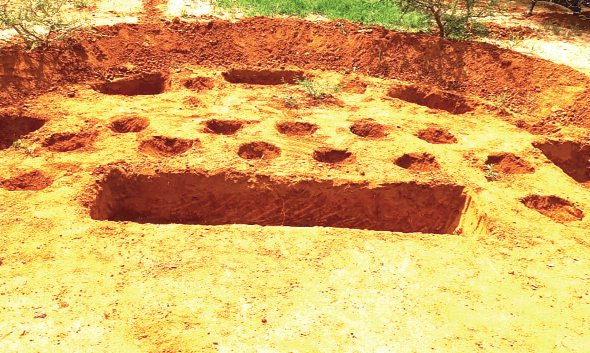 Armée de pioche, de pelle, d’un triangle à pente à niveau, d’une corde et d’un rayonneur, elle trace dans sa parcelle d’un quart d’hectare (0,25 ha), des demi-cercles (demi-lune) et creuse à l’intérieur des trous perpendiculaires à la pente. Au milieu du cercle, se dresse un autre trou destiné cette fois-ci à planter un arbre. En creusant à l’intérieur de la demi-lune, on enlève la première couche de terre que l’on dépose en amont. Celle-ci est ensuite mélangé avec du compost. Ce mélange est répandu dans la demi-lune. Il y a également les lignes, celles qui serviront de micro bassins pour contenir les eaux de pluie.