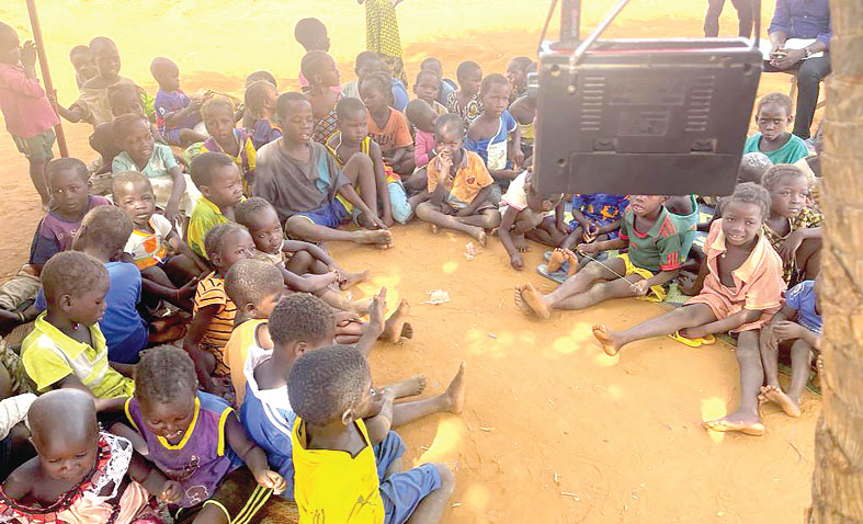 Derrière la joie des enfants déplacés de poursuivre leur cursus scolaire et leur soif de réussir, se cache une véritable bataille de la communauté éducative, du gouvernement burkinabè et de ses partenaires comme l’UNICEF Burkina. Ces derniers multiplient les alternatives éducatives pour, disent-ils, permettre un « retour gagnant » des élèves déplacés sur les blancs. Le développement des alternatives éducatives d’urgence a permis d’assurer la continuité éducative des enfants déplacés internes dans les zones de repli. Situé à l’entrée de la ville de Kaya, en provenance de Ouagadougou, le site « Sougr Noma » des déplacés abrite un club d’écoute destiné à « maintenir le niveau des élèves déplacés et/ou à permettre aux non-scolarisés d’accéder à l’école ». Un poste radio est suspendu sur l’arbre dont l’ombre est pris d’assaut par des bambins, assis à même le sol. Il diffuse un cours de calcul mental, portant sur la multiplication des nombres par 9. Au milieu du groupuscule, Clémentine Mano explique, en langue mooré, la règle à suivre. Destiné notamment aux enfants déplacés de 3 à 17 ans, ce programme est appelé l’Education par la radio, affirme Mme Mano, tutrice du club qui travaille pour le compte de l’association Action communautaire de développement du Centre-Nord (ACD/CN). Cette dernière est promotrice d’une radio privée, chargée de diffuser les cours, deux fois par jour, du mardi au vendredi.
