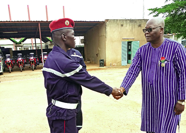 Le soldat du feu, Ivo Zama, de retour d’une permission a sauvé la vie à une soixantaine de passagers d’un car de transport en commun, tombé dans un ravin sous une forte pluie. « Alors que les eaux menaçaient de les emporter, le sapeur-pompier a libéré son génie, sauvant tous les voyageurs de la noyage à l’aide d’une corde, avant l’arrivée d’une équipe des sapeurs-pompiers en provenance de Boromo », a précisé le ministre d’Etat, ministre de l’Administration territoriale, de la Décentralisation et de la cohésion sociale, Siméon Sawadogo, qui a présidé une cérémonie de décoration à titre exceptionnel, du jeune pompier, le jeudi 3 octobre 2019 à Ouagadougou. Ainsi, le soldat du feu a reçu la médaille d’honneur des sapeurs-pompiers avec agrafe étoile d’or. Interrogé, le bénéficiaire, entouré de ses frères d’armes et des membres de sa famille avec à leur tête le général à la retraite Kouamé Lougué, visiblement ému, s’est montré peu bavard : « c’est une fierté pour moi, mais surtout une invite au sens de l’honneur et du devoir du sapeur-pompier ». Pour le ministre d’Etat, cette décoration vise à célébrer le courage et la bravoure du soldat Zama pour un « haut fait unique ». De l’avis de Siméon Sawadogo, au-delà du « héros », la reconnaissance s’adresse à l’ensemble du corps des sapeurs-pompiers qui se battent jour et nuit pour sauver des vies dans des conditions difficiles et parfois au péril de leur vie. « Nous avons voulu, à travers cette décoration symbolique du soldat Ivo Zama, traduire la reconnaissance de la nation aux soldats du feu pour les efforts inlassables lors des opérations de sauvetage et les encourager à poursuivre dans la même dynamique », a fait savoir M. Sawadogo.