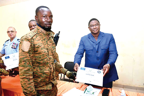 Aussi, il s’agit, comme l’a signifié Maxim Koné, d’installer tour à tour une ceinture de sécurité sur les bandes frontalières avec les pays voisins du Burkina. Et ce, conformément à la stratégie nationale de défense et de sécurisation du territoire. L’expert en sécurité intérieure auprès de la délégation de l’Union européenne au Burkina, Guy Enfru, a invité les éléments du GARSI II à plus de solidarité entre eux sur le terrain. Mieux, il les a conseillés de collaborer avec les populations pour avoir leur soutien et le renseignement nécessaire à la réussite de leur mission. Aussi, M. Enfru a rassuré qu’au nom de la relation bilatérale avec le Burkina Faso, l’UE sera toujours à ses côtés pour lui apporter le soutien nécessaire pour le retour à la sécurité. « Nous mettrons les moyens nécessaires pour aider le pays à faire face à cette menace terroriste. Nous allons poursuivre notre accompagnement dans la démarche qui est la vôtre de former des unités capables de faire changer la situation tactique et stratégique sur le terrain », a-t-il dit.