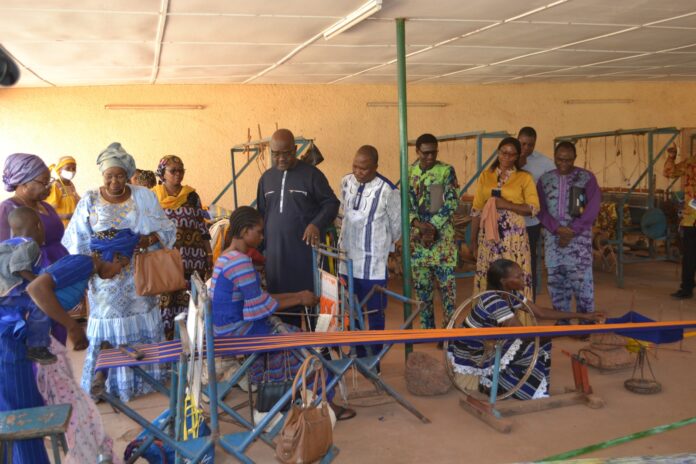 Le ministère de l’Action humanitaire et de la Solidarité, à l’occasion de la semaine nationale de la solidarité, a visité des structures, mercredi 3 décembre 2025, à Ouagadougou. L’Unité artisanale de production godé (UAP-GODE), sis au quartier Kamsonghin dans l’arrondissement 1 de la ville de Ouagadougou a accueilli en premier les membres de la délégation. Ils ont visité l’outillage du fil à tisser, la teinture du fil, la chaine de tissage, la salle de tissage et le magazin des produits finis.