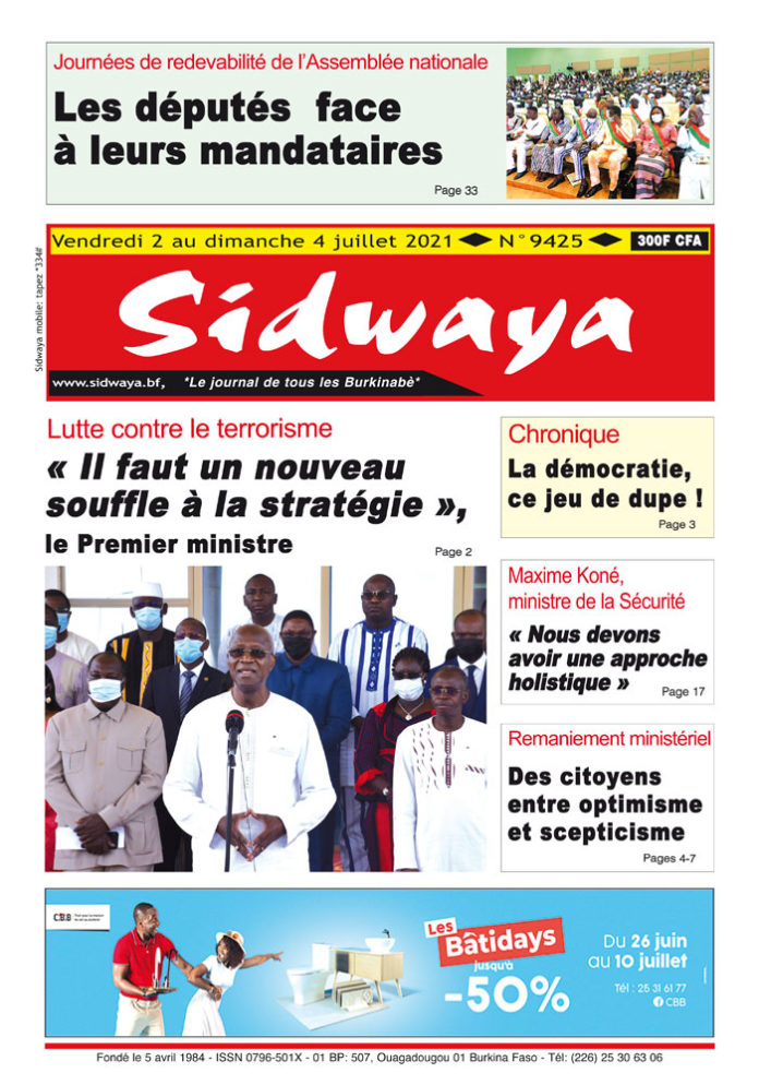 SIDWAYA QUOTIDIEN Sidwaya du 02 au 04-07-2021 Par JK. Sidwaya - 1 juillet 2021 FacebookTwitterPinterestWhatsAppLinkedinE-mailImprimerTumblrTelegramViberNaver