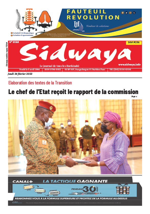 SIDWAYA QUOTIDIEN Sidwaya du 24/02/2022 Par JK. Sidwaya - 23 février 2022 FacebookTwitterPinterestWhatsAppLinkedinE-mailImprimerTumblrTelegramViberNaver
