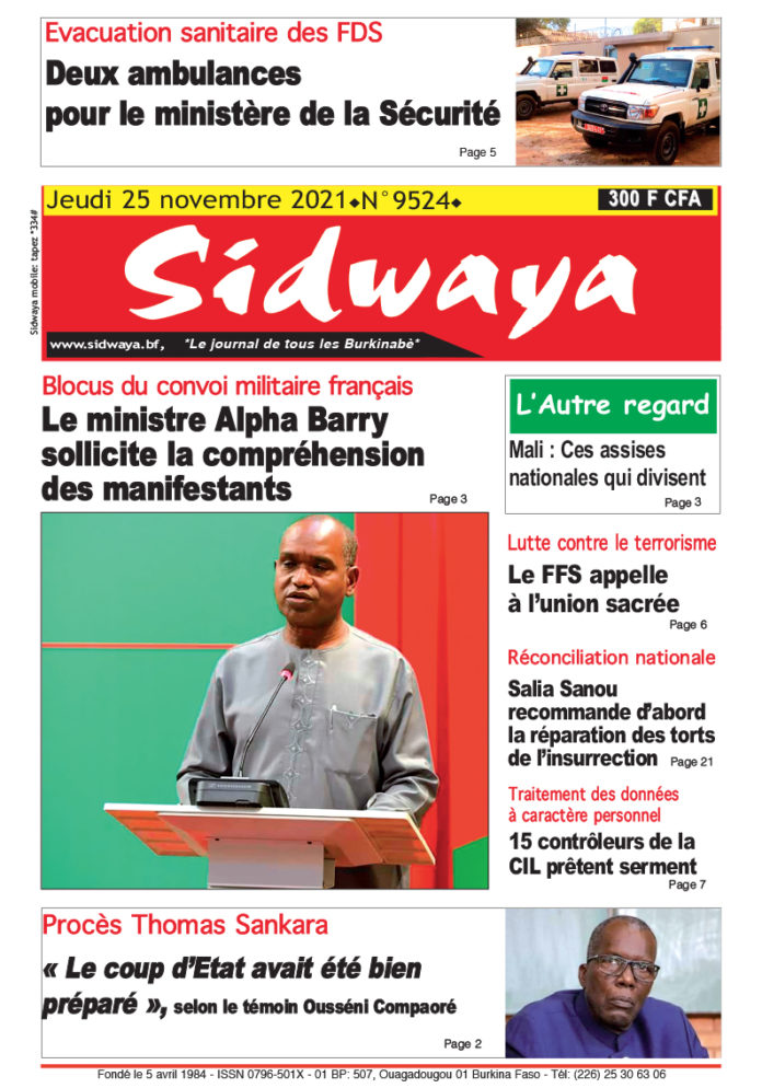 SIDWAYA QUOTIDIEN Sidwaya du 25/11/2021 Par JK. Sidwaya - 24 novembre 2021 FacebookTwitterPinterestWhatsAppLinkedinE-mailImprimerTumblrTelegramViberNaver