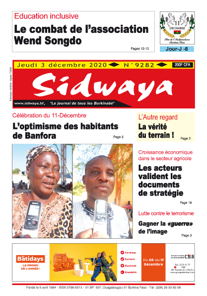 SIDWAYA QUOTIDIEN Sidwaya du 3-12-2020 Par BM. Sidwaya - 2 décembre 2020 FacebookTwitterPinterestWhatsAppLinkedinE-mailImprimerTumblrTelegramViberNaver