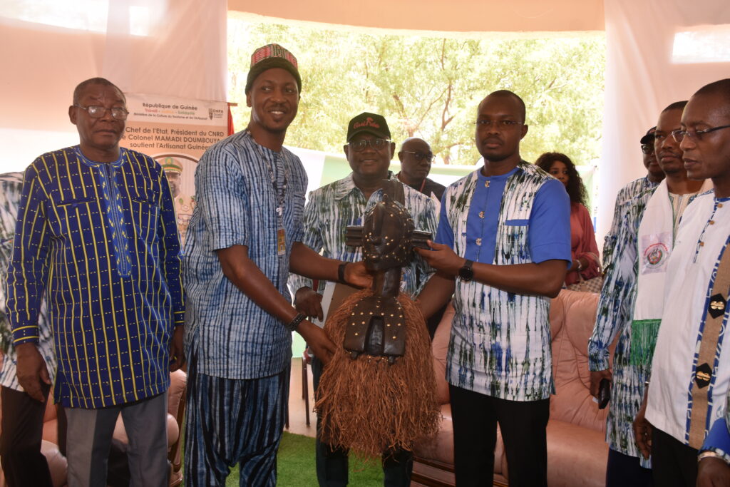 En guise de remerciement pour l’honneur qui fait à leur pays, la délégation guinéenne a remis une représentation du masque Nimba au Burkina Faso.