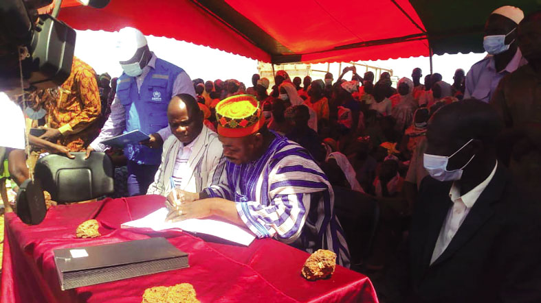 Les populations du village de Tifou (Wayalguin), commune de Kaya, ont officiellement remis aux autorités coutumières du Sanmatenga et ses partenaires un espace de 5 hectares pour abriter un site de personnes déplacées internes de Kaya, le mardi 20 octobre 2020.