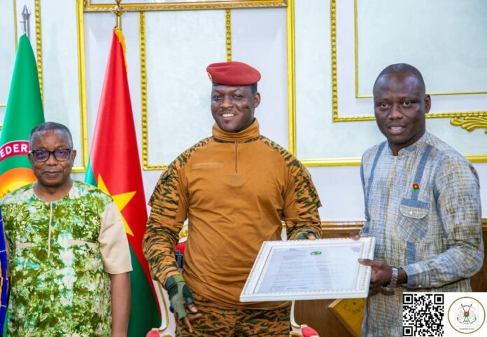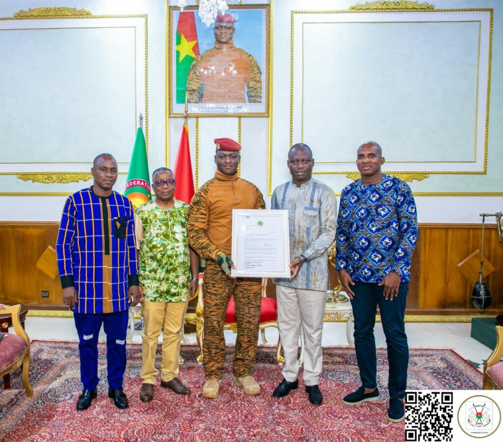 Le Président du Faso, Chef de l’État, le Capitaine Ibrahim TRAORÉ, a reçu ce vendredi 4 juillet 2025, en fin de matinée, le certificat d’homologation du Stade du 4-Août des mains du ministre des Sports, de la Jeunesse et de l’Emploi, M. Roland SOMDA.
