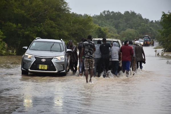 Dans la journée du mardi 13 septembre 2022, les eaux avaient déjà diminué mais ne permettaient toujours pas aux usagers de franchir la chaussée sans danger. C’est ainsi que les riverains ont décidé de voler au secours des usagers moyennant une certaine somme.