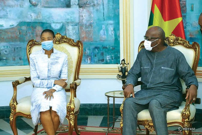 Le Président du Faso, Roch Marc Christian Kaboré, a reçu la Coordonnatrice-résidente du Système des Nations unies au Burkina Faso, Metsi Makhetha, au palais de Kosyam en fin de mission, le lundi 12 juillet 2021. Il s’est également entretenu avec le président sortant du Conseil régional de l’épargne publique et des marchés financiers, Mamadou Ndiaye, le président du Conseil supérieur de la magistrature, Jean Mazobé Kondé et le secrétaire exécutif de l’Alliance pour le biodigesteur en Afrique de l’Ouest et du Centre, Jean-Claude Houssou Dona.