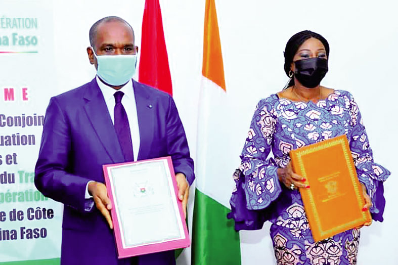 Les rideaux sont tombés, dans l’après-midi du vendredi 30 avril 2021 à Abidjan, sur les travaux de la IVe réunion du Comité conjoint de suivi et d’évaluation (CCSE) du Traité d’amitié et de coopération (TAC) entre le Burkina Faso et la Côte d’Ivoire. Au terme des travaux, six projets d’accords ont été examinés, dont trois finalisés et retenus pour être soumis à signature dans le cadre du TAC 9, prévu en juillet prochain. Les projets d’accord finalisés concernent les coopérations dans les domaines de l’urbanisme et de l’habitat, la gestion des sachets plastiques et le projet de programme d’échanges culturel.