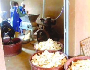 principalement par la fabrication de l’atiéké à base de manioc et autres produits dérivés. Avec le temps, nous avons associé la transformation du maïs, du riz mais aussi des produits forestiers non ligneux », raconte la présidente de la coopérative Christine Yaméogo. A partir du manioc uniquement, Mme Yaméogo et ses collaboratrices, créent une dizaine de produits tels que les biscuits, la farine infantile, les gâteaux, du jus, du vin et de la liqueur.