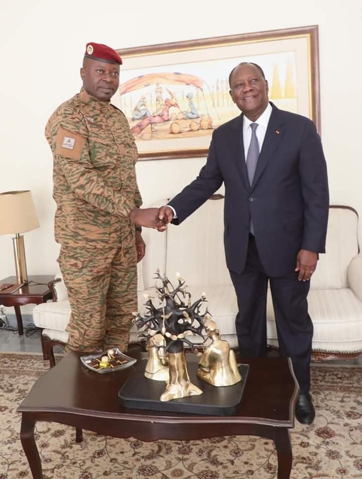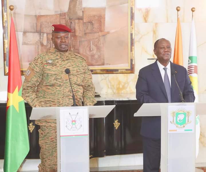 « La Côte d’Ivoire est en plein soutien à vos efforts. Nous estimons que cette situation d’attaques terroristes concerne toute la sous-région et nous devons tout faire pour vous soutenir, pour vous aider et aussi pour continuer d’échanger les renseignements, d’avoir une coopération au niveau de nos forces de défense et de sécurité, que ce soit au plan bilatéral ou dans le cadre de l’initiative d’Accra », a déclaré le Président Alassane Ouattara qui a réitéré la disponibilité de son pays à reprendre et à renforcer la coopération économique et financière entre son pays et le Burkina Faso et dans le cadre de la sous-région.