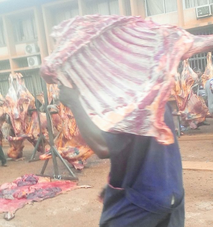 La viande est un aliment très prisé par les Burkinabè, et les Ouagalais en particulier. Malheureusement, les conditions d’hygiène et de transport (mobylettes, tricycles, voitures non frigorifiées, etc.) qui précèdent sa commercialisation sont parfois répugnantes. Boucher au marché de Arb-yaar, Saïdou Sawadogo, avoue, sourire aux lèvres, qu’il trimballe quotidiennement sa viande sur sa mobylette. En ce début de matinée du samedi 16 mars 2019, il enfourche sa moto, pour rejoindre son lieu de travail, les jambes posées sur la viande pour la maintenir en équilibre. Les bras solidement accrochés au guidon, il slalome entre les voitures et les motocyclettes. «Regardez, mes pieds n’atteignent plus les freins, je sais que je suis exposé aux accidents de la route. Mais je n’ai pas le choix, si je veux assurer ma pitance quotidienne», explique-t-il. En direction du centre-ville, aux environs du quartier Larlé, un autre transporteur de viande s’attire le courroux des usagers de la route. Après moult acrobaties, il parvient à immobiliser de justesse sa moto au niveau des feux tricolores. La viande fourrée entre la selle et le guidon, il se faufile entre les véhicules, réussit à se frayer un passage et disparaît dans la circulation. «Ils sont à l’origine de nombreux accidents de la route et sont régulièrement traqués par les policiers», affirme Halidou Kaboré, boucher de son état. Le transport de la viande à l’aide de moyens inadaptés n’est pas observable uniquement dans les abattoirs de fortune. Le phénomène est également perceptible à l’abattoir frigorifique de Ouagadougou où la viande est manipulée sans aucune mesure appropriée. Les aides-bouchers (agents chargés de ramasser la viande dans les chambres froides pour les placer sur les crochets et tables du boucher) et les mandataires (les agents chargés de décrocher les carcasses pour les charger dans les véhicules) portent allègrement la viande qui sur la tête, qui sur le dos ou les épaules. «La viande doit être transportée dans des chariots ou des paniers pour sortir de la chambre froide et non sur la tête ou le dos », rappelle Mamoudou Ouédraogo, le directeur de la société de gestion de l’abattoir frigorifique de Ouagadougou (SOGEAO). Selon les textes qui régissent la profession de boucher, les aides-bouchers doivent, par exemple, porter une blouse et un chapeau rose et des bottes. En outre, ces vêtements doivent être régulièrement désinfectés. Les mandataires sont soumis aux mêmes règles, mais doivent porter une blouse et un chapeau bleus et des bottes. L’application des textes en vigueur connait cependant des difficultés. La manipulation et le transport de la viande à Ouagadougou ne suivent aucune règle. Pire, ces mauvais comportements ont lieu au nez et à la barbe des responsables de l’abattoir et des autorités municipales. « Heureusement que c’est un aliment qui se consomme après cuisson », estime Dramane Traoré, président de la Ligue des consommateurs du Burkina (LCB).