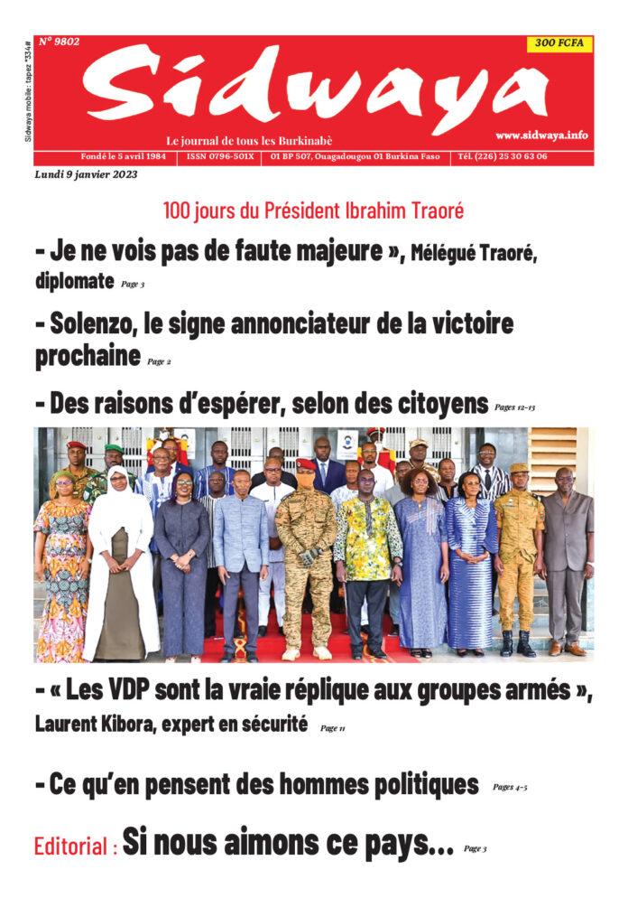 SIDWAYA QUOTIDIEN Une 9/01/2023 Par JK. Sidwaya - 8 janvier 2023 FacebookTwitterPinterestWhatsAppLinkedinE-mailImprimerTumblrTelegramViberNaver