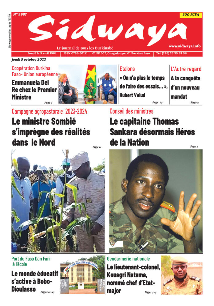 SIDWAYA QUOTIDIEN Une du 05-10-2023 Par JK. Sidwaya - 4 octobre 2023 FacebookTwitterPinterestWhatsAppLinkedinE-mailImprimerTumblrTelegramViberNaver