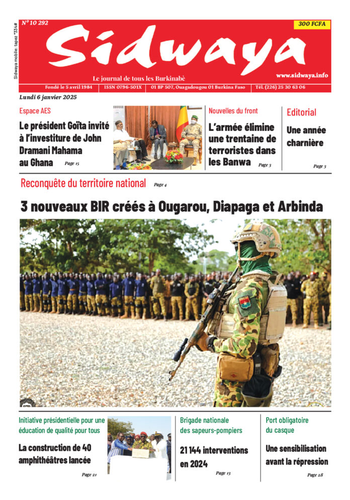 SIDWAYA QUOTIDIEN Une du 06-01-2025 Par JK. Sidwaya - 5 janvier 2025 FacebookTwitterPinterestWhatsAppLinkedinE-mailImprimerTumblrTelegramViberNaver