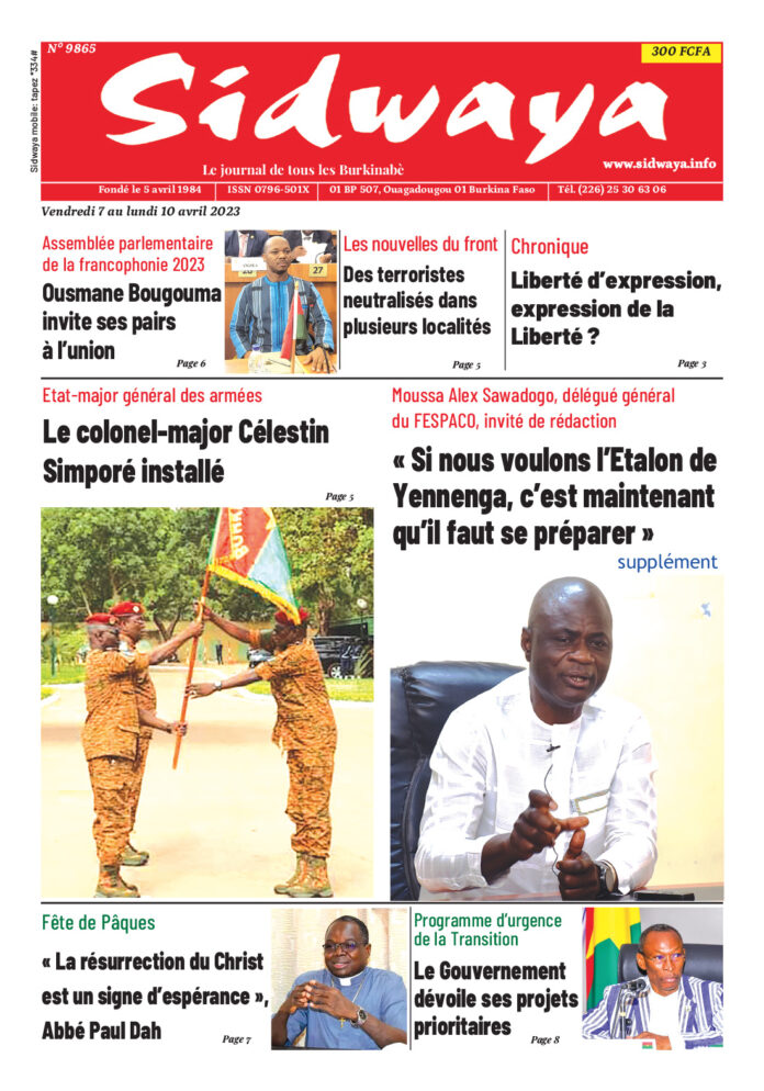 SIDWAYA QUOTIDIEN Une du 07-04-2023 Par JK. Sidwaya - 6 avril 2023 FacebookTwitterPinterestWhatsAppLinkedinE-mailImprimerTumblrTelegramViberNaver
