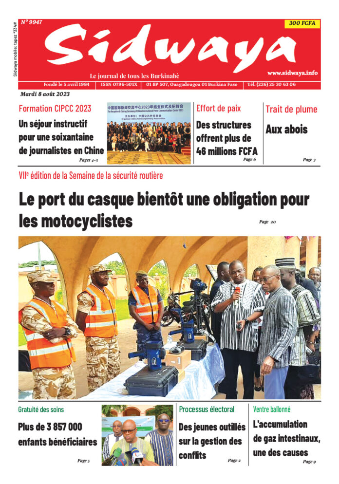 SIDWAYA QUOTIDIEN Une du 08-08-2023 Par JK. Sidwaya - 7 août 2023 FacebookTwitterPinterestWhatsAppLinkedinE-mailImprimerTumblrTelegramViberNaver