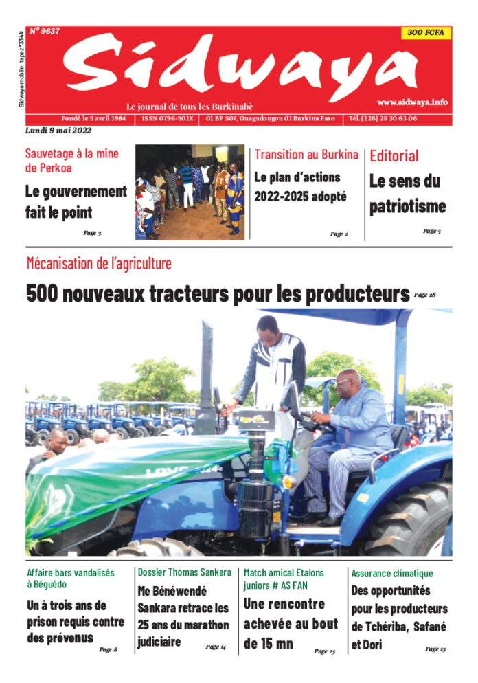 SIDWAYA QUOTIDIEN Une du 09/05/2022 Par JK. Sidwaya - 8 mai 2022 FacebookTwitterPinterestWhatsAppLinkedinE-mailImprimerTumblrTelegramViberNaver