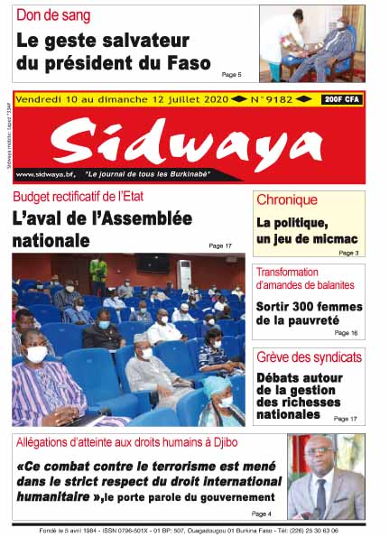 SIDWAYA QUOTIDIEN Une du 10-07-2020 Par DD. Sidwaya - 9 juillet 2020 FacebookTwitterPinterestWhatsAppLinkedinE-mailImprimerTumblrTelegramViberNaver