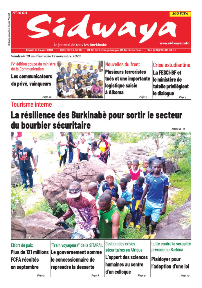 SIDWAYA QUOTIDIEN Une du 10-11-2023 Par JK. Sidwaya - 9 novembre 2023 FacebookTwitterPinterestWhatsAppLinkedinE-mailImprimerTumblrTelegramViberNaver