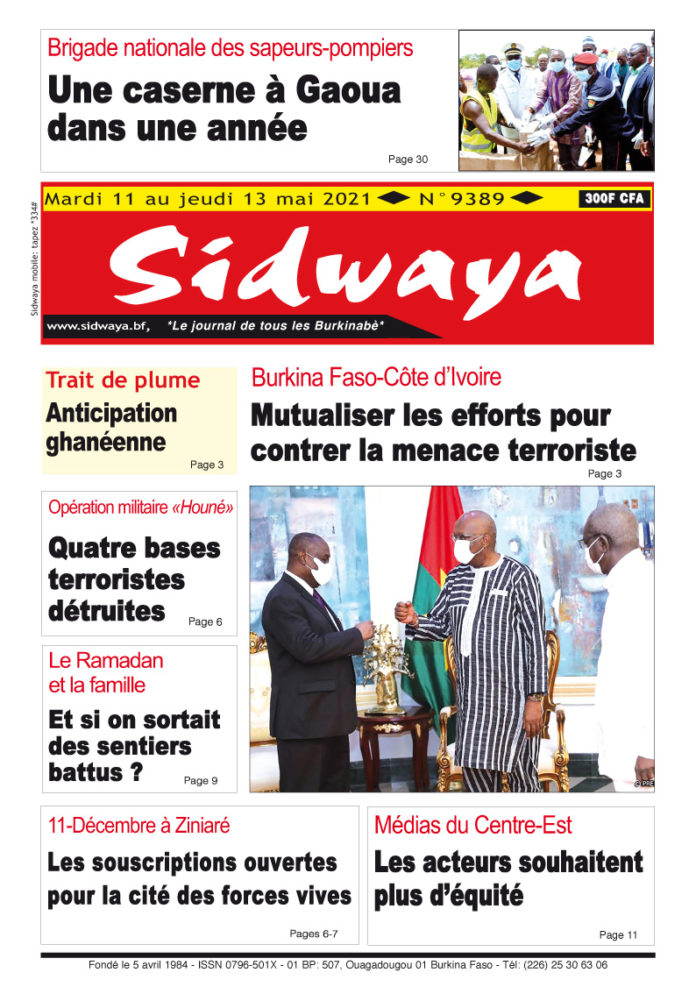 SIDWAYA QUOTIDIEN Une du 11-02-2021 Par BM. Sidwaya - 10 mai 2021 FacebookTwitterPinterestWhatsAppLinkedinE-mailImprimerTumblrTelegramViberNaver