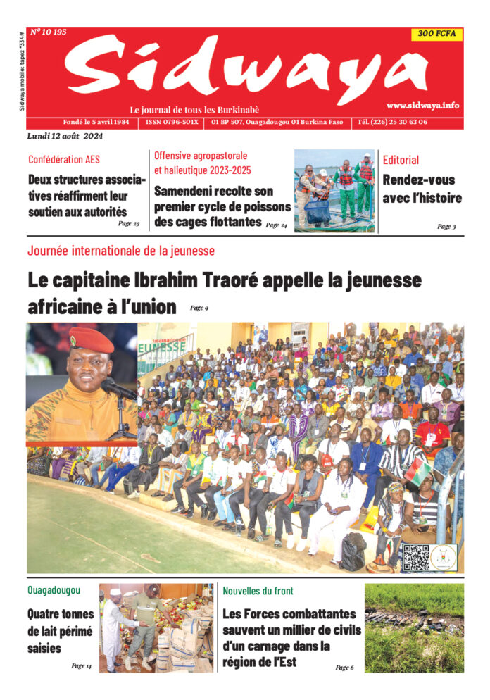 SIDWAYA QUOTIDIEN Une du 12-08-2024 Par JK. Sidwaya - 11 août 2024 FacebookTwitterPinterestWhatsAppLinkedinE-mailImprimerTumblrTelegramViberNaver