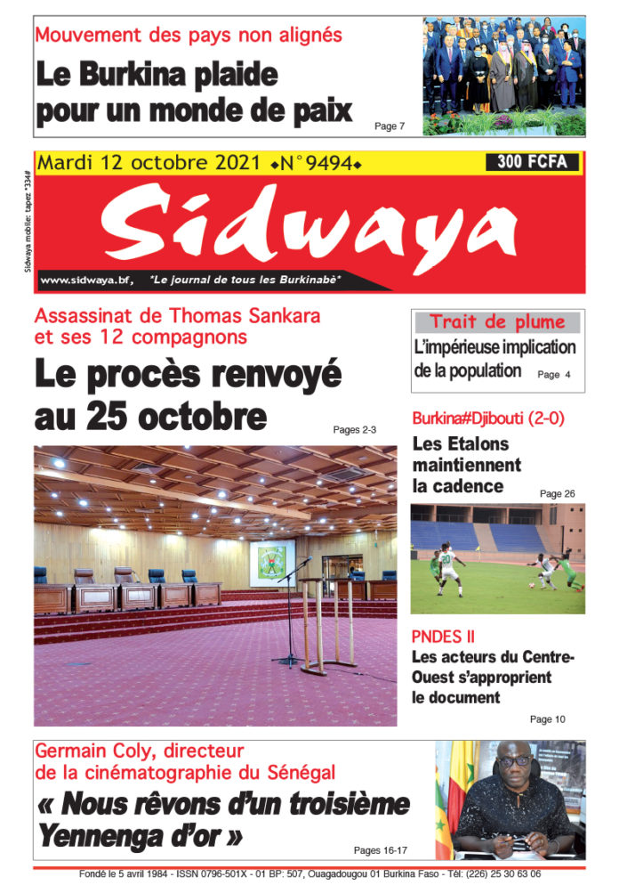 SIDWAYA QUOTIDIEN Une du 12/10/2021 Par BM. Sidwaya - 11 octobre 2021 FacebookTwitterPinterestWhatsAppLinkedinE-mailImprimerTumblrTelegramViberNaver
