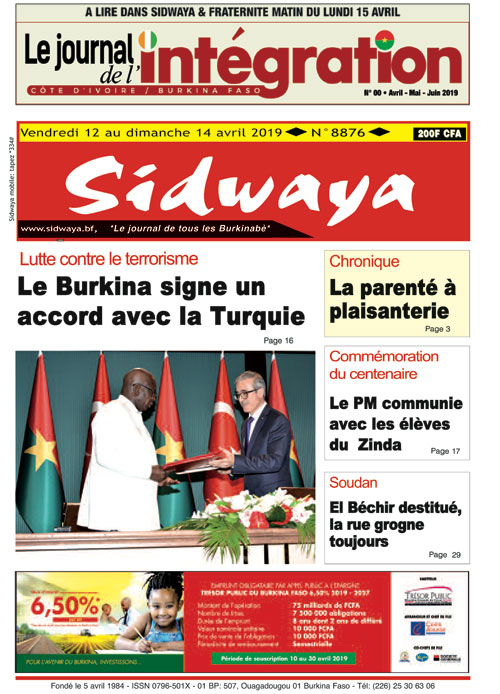 SIDWAYA QUOTIDIEN Une du 12 avril 2019 Par JK. Sidwaya - 12 avril 2019 FacebookTwitterPinterestWhatsAppLinkedinE-mailImprimerTumblrTelegramViberNaver