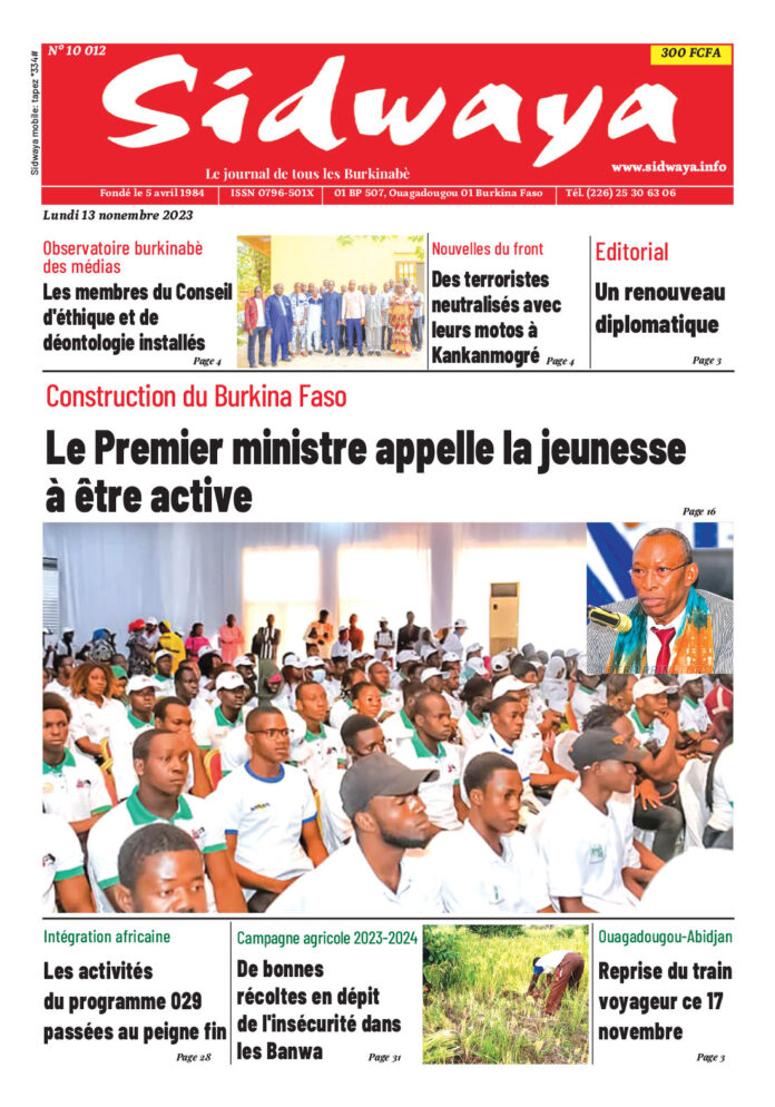 SIDWAYA QUOTIDIEN Une du 13-11-2023 Par JK. Sidwaya - 12 novembre 2023 FacebookTwitterPinterestWhatsAppLinkedinE-mailImprimerTumblrTelegramViberNaver