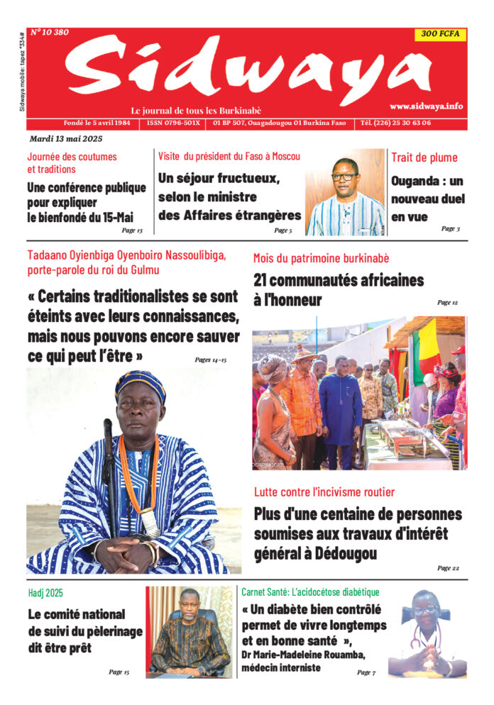 SIDWAYA QUOTIDIEN Une du 13-5-2025 Par JK. Sidwaya - 13 mai 2025 FacebookTwitterPinterestWhatsAppLinkedinE-mailImprimerTumblrTelegramViberNaver