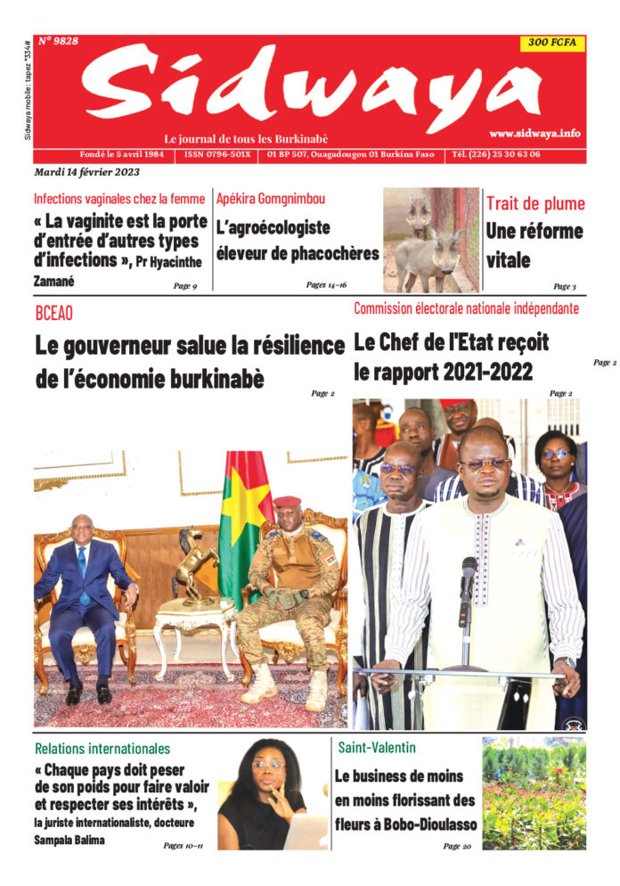 SIDWAYA QUOTIDIEN Une du 14-02-2023 Par JK. Sidwaya - 13 février 2023 FacebookTwitterPinterestWhatsAppLinkedinE-mailImprimerTumblrTelegramViberNaver
