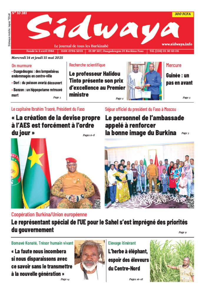 SIDWAYA QUOTIDIEN Une du 14-05-2025 Par JK. Sidwaya - 14 mai 2025 FacebookTwitterPinterestWhatsAppLinkedinE-mailImprimerTumblrTelegramViberNaver