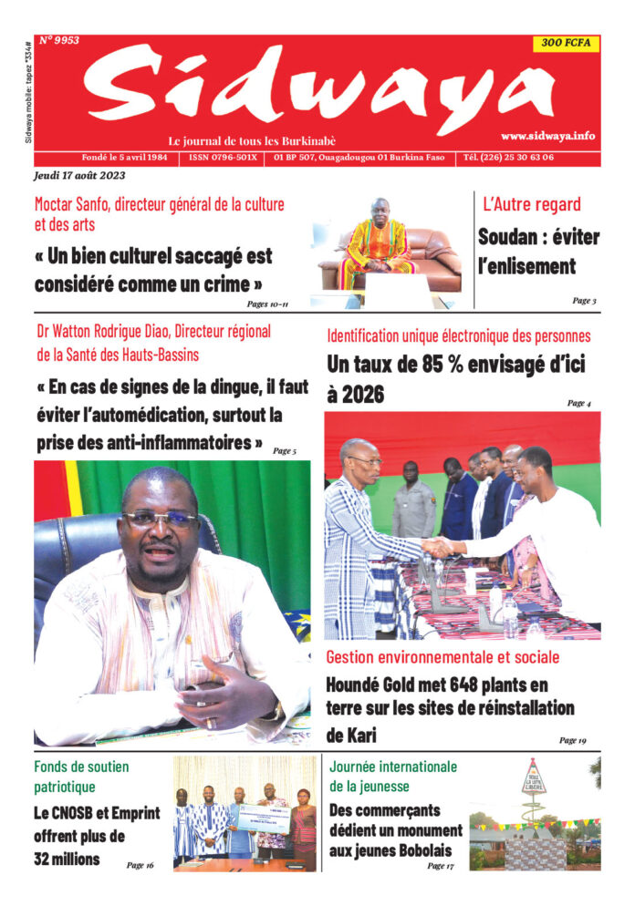 SIDWAYA QUOTIDIEN Une du 17-08-2023 Par JK. Sidwaya - 16 août 2023 FacebookTwitterPinterestWhatsAppLinkedinE-mailImprimerTumblrTelegramViberNaver