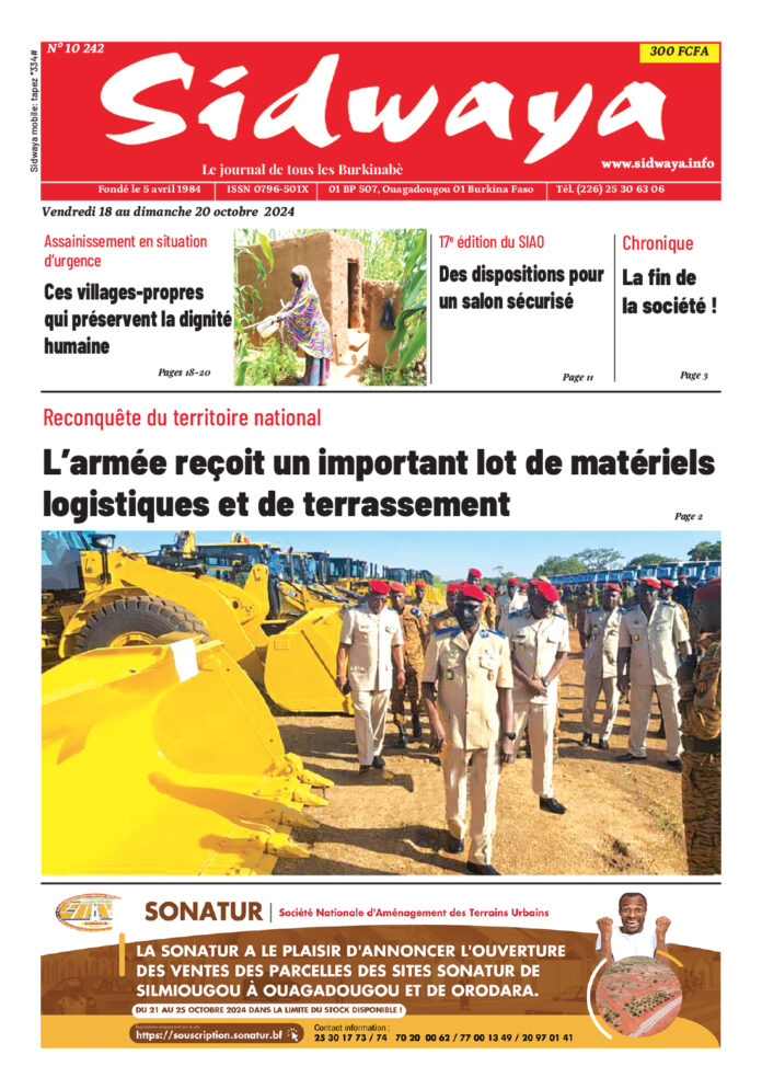 SIDWAYA QUOTIDIEN Une du 18-10-2024 Par JK. Sidwaya - 17 octobre 2024 FacebookTwitterPinterestWhatsAppLinkedinE-mailImprimerTumblrTelegramViberNaver