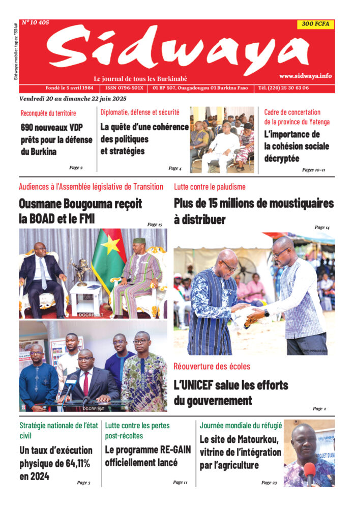 SIDWAYA QUOTIDIEN Une du 20-6-2025 Par JK. Sidwaya - 19 juin 2025 FacebookTwitterPinterestWhatsAppLinkedinE-mailImprimerTumblrTelegramViberNaver
