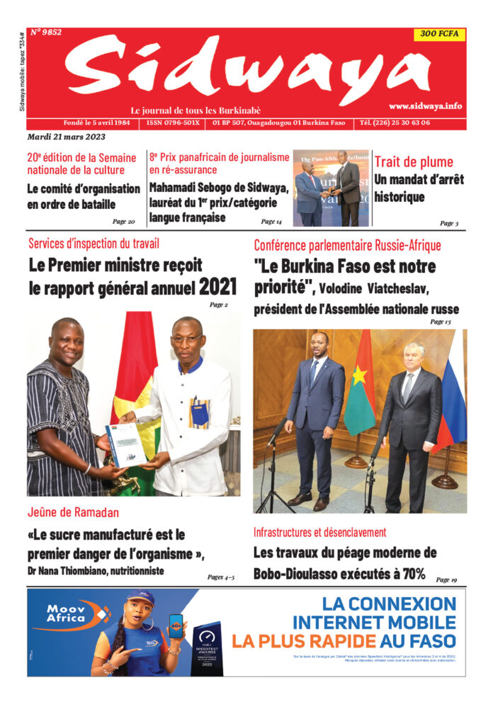 SIDWAYA QUOTIDIEN Une du 21-03-2023 Par JK. Sidwaya - 20 mars 2023 FacebookTwitterPinterestWhatsAppLinkedinE-mailImprimerTumblrTelegramViberNaver