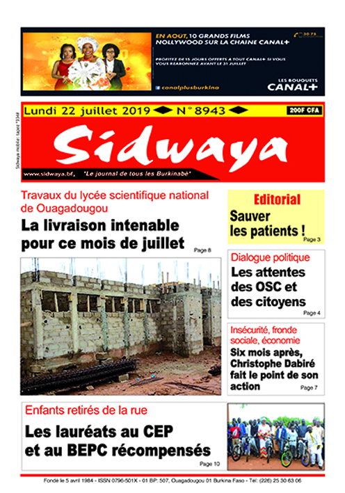 SIDWAYA QUOTIDIEN Une du 22 juillet 2019 Par DD. Sidwaya - 21 juillet 2019 FacebookTwitterPinterestWhatsAppLinkedinE-mailImprimerTumblrTelegramViberNaver
