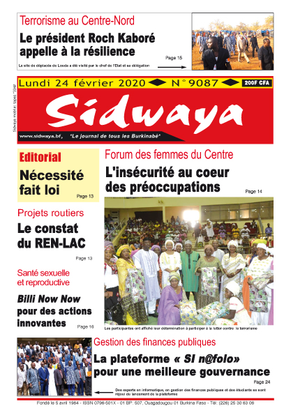 SIDWAYA QUOTIDIEN Une du 24-02-2020 Par DD. Sidwaya - 24 février 2020 FacebookTwitterPinterestWhatsAppLinkedinE-mailImprimerTumblrTelegramViberNaver