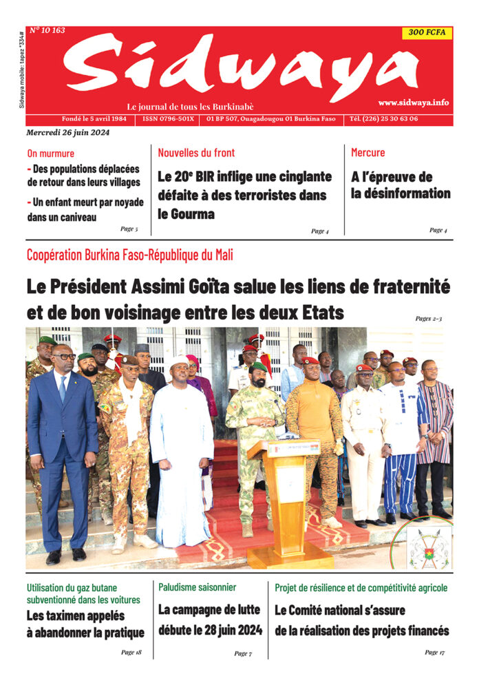 SIDWAYA QUOTIDIEN Une du 26-06-2024 Par JK. Sidwaya - 25 juin 2024 FacebookTwitterPinterestWhatsAppLinkedinE-mailImprimerTumblrTelegramViberNaver