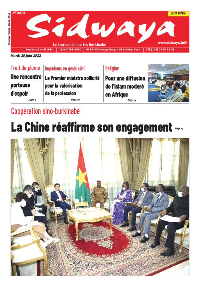 SIDWAYA QUOTIDIEN Une du 28/06/2022 Par JK. Sidwaya - 27 juin 2022 FacebookTwitterPinterestWhatsAppLinkedinE-mailImprimerTumblrTelegramViberNaver