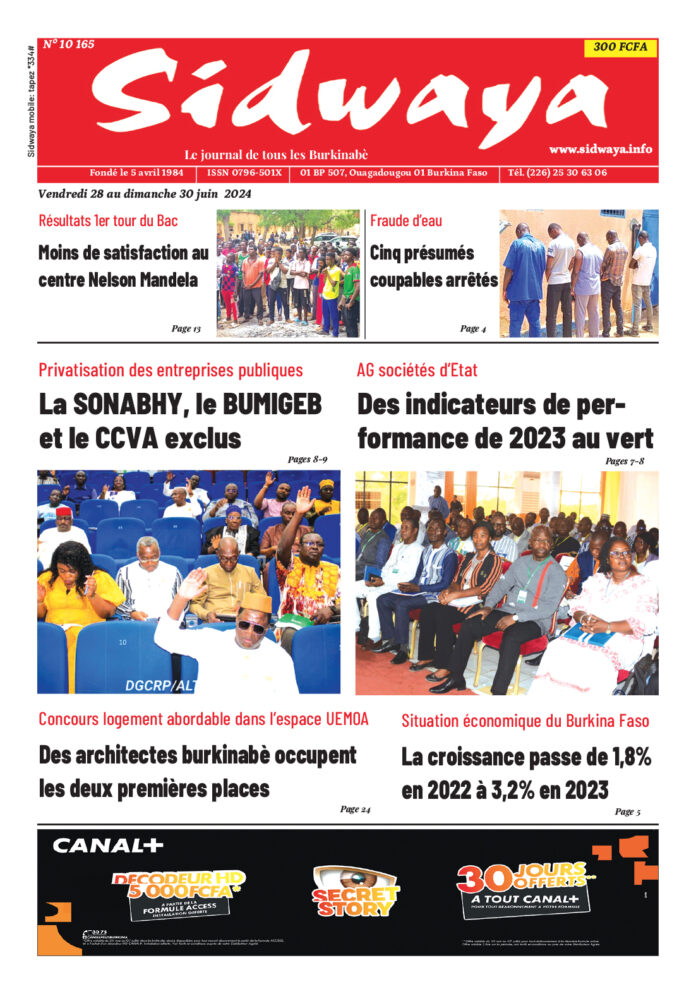 SIDWAYA QUOTIDIEN Une du 28-06-2024 Par JK. Sidwaya - 27 juin 2024 FacebookTwitterPinterestWhatsAppLinkedinE-mailImprimerTumblrTelegramViberNaver