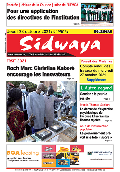 SIDWAYA QUOTIDIEN Une du 28/10/2021 Par JK. Sidwaya - 27 octobre 2021 FacebookTwitterPinterestWhatsAppLinkedinE-mailImprimerTumblrTelegramViberNaver