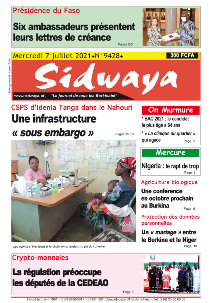 SIDWAYA QUOTIDIEN Une du 7-7-2021 Par BM. Sidwaya - 6 juillet 2021 FacebookTwitterPinterestWhatsAppLinkedinE-mailImprimerTumblrTelegramViberNaver