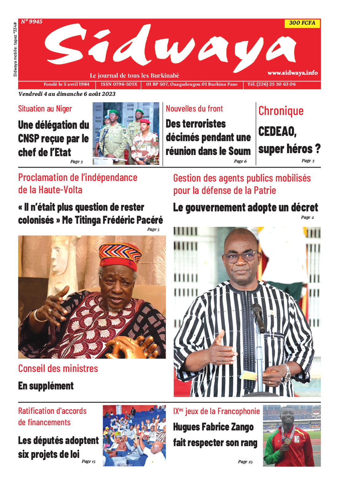 SIDWAYA QUOTIDIEN Une du04-08-2023 Par JK. Sidwaya - 3 août 2023 FacebookTwitterPinterestWhatsAppLinkedinE-mailImprimerTumblrTelegramViberNaver