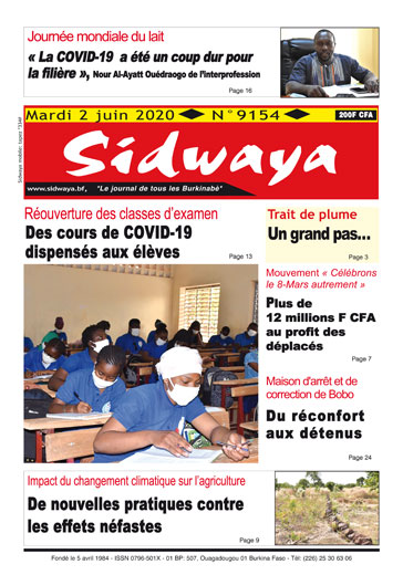 SIDWAYA QUOTIDIEN Une sidwaya du 02 06 2020 Par BM. Sidwaya - 1 juin 2020 FacebookTwitterPinterestWhatsAppLinkedinE-mailImprimerTumblrTelegramViberNaver