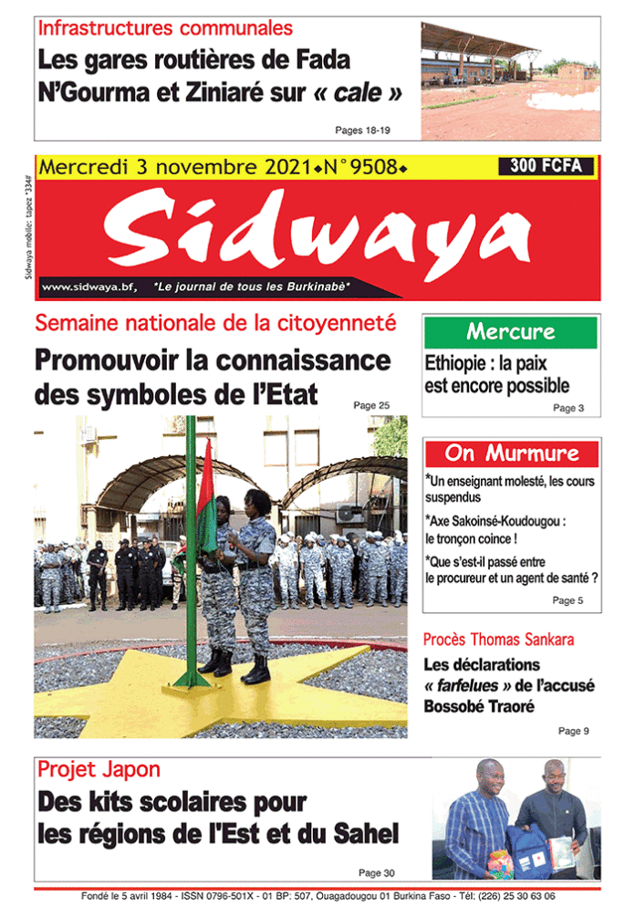 SIDWAYA QUOTIDIEN Une Sidwaya du 03-11-2021 Par JK. Sidwaya - 2 novembre 2021 FacebookTwitterPinterestWhatsAppLinkedinE-mailImprimerTumblrTelegramViberNaver